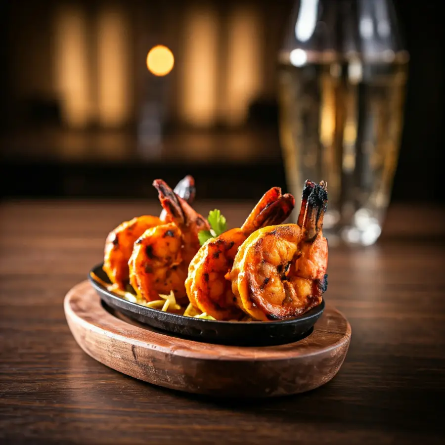 Shrimp marinated in spicy yogurt sauce and grilled until tender. This dish offers a delightful seafood experience that’s both flavorful and satisfying.